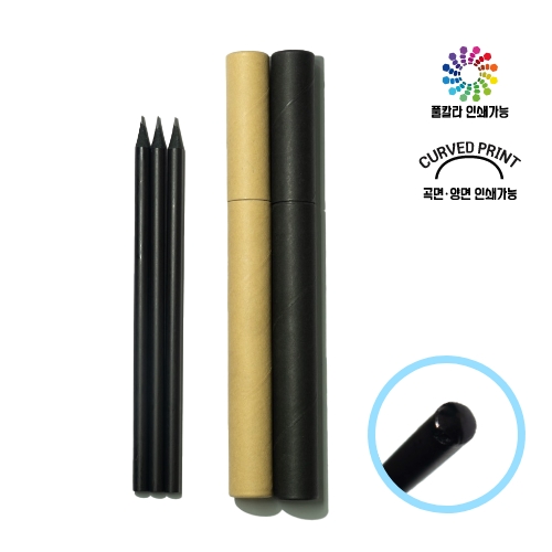 흑목 원형 미두 연필 3본입 원통 세트