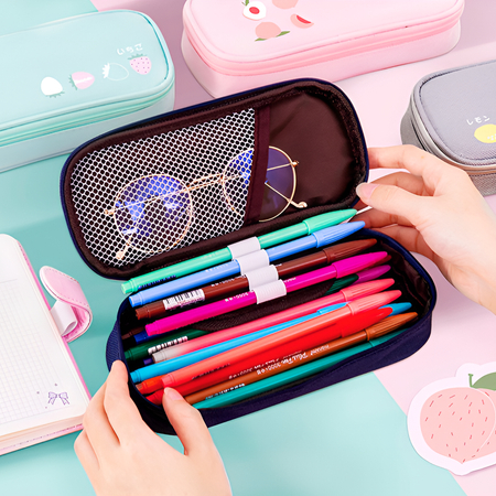 플립형 더블 지퍼 파우치 필통 대용량