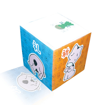 최소수량미만 제작가능여부 상담 문의 인쇄방법 내지 1도옵셋인쇄, 측면 전사인쇄 제품재질 80g 백상모조지 제품크기 80*80*80mm