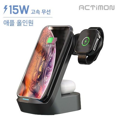 15W 애플 올인원 고속 거치 무선충전(애플워치)