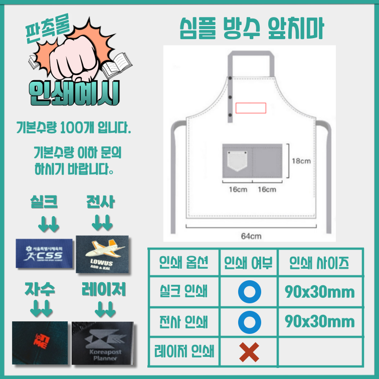 단정 심플 방수 앞치마 무지 방수 카페 어린이집 공방 주방 바리스타 유니폼 작업용