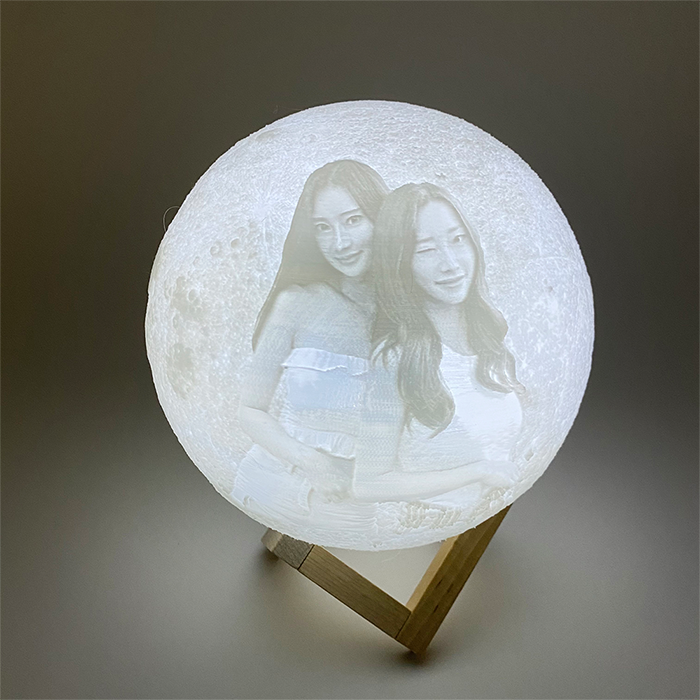LED 사진 로고 주문제작 달무드등 2색 15~20cm// 원목받침대 각인 가능